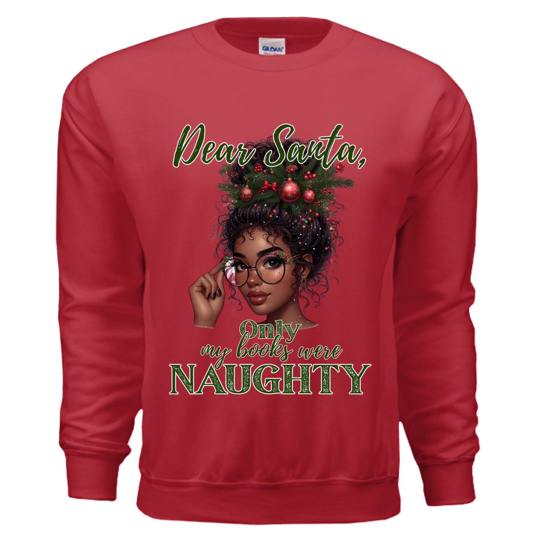 Featuring a stunning illustration of a bookish beauty with holiday flair, this soft cranberry-red sweatshirt is your new favorite reading-season essential. Whether you’re curled up with your latest dark romance or sneaking one more chapter before bed, this sweater says it all: Dear Santa, Only My Books Were Naughty.